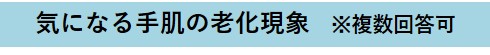 女性が感じる手肌(手の甲)の老化現象を調査 <サマリー> 88.1%の女性が手肌(手の甲)の老化を感じている。 気になる手肌の老化現象は、20・30・40代は “乾燥・カサつき” 、50代以降は “シワ” が多い。 最も気になる手肌の老化現象は、20・30・40代は “乾燥・カサつき” 、50代は “シミ” 、60代以上は “血管が浮き出ている” 。 手肌のシミは20・30代でも約4割があり、40代からある割合・数ともに急増する。医療機関での手肌のシミ治療の経験者は4%程度。 6月~7月に、手肌に日焼け止めを使用する女性は60.0%、保湿化粧品を使用する女性は55.5%。 女性が感じる手肌(手の甲)の老化現象を知るために、気になる老化現象やシミの数、ケアの状況などについて、 2024年6月~7月にかけて20歳以上の女性1,188名を対象に調査・解析しました。 88.1%の女性が手肌(手の甲)の老化を感じている。 手肌の老化実感を調査したところ、88.1%の女性が手肌の老化を「感じる」(「とても感じる」「感じる」「やや感じる」の合算)ことがわかりました。 手肌の老化を感じる?(N=1,188) Fig.35-1 手肌の老化(全体) (年代別) Fig.35-1 手肌の老化(年代別) Q.手肌(手の甲)についてお伺いします。手肌の老化を感じますか? 気になる手肌の老化現象は、20・30・40代は “乾燥・カサつき”、50代以降は “シワ” が多い。 気になる手肌の老化現象を調査したところ、20代は「乾燥・カサつき」が65.0%と特に多く、30代は「乾燥・カサつき」の他に「シワ」、40代は「乾燥・カサつき」「シワ」「シミ」、50代は「シワ」「シミ」「血管が浮き出ている」「乾燥・カサつき」が5割前後に並ぶ結果となりました。 悩み別に見ると「シワ」「シミ」「血管が浮き出ている」は、年代があがるにつれて割合が増えていく傾向がありました。 Q.気になる手肌の老化現象は? *複数回答可Fig.35-2 気になる手肌の老化現象(年代別) 手肌の老化現象の中で最も気になるものは、20・30・40代は “乾燥・カサつき” 、50代は “シミ” 、60代以上は “血管が浮き出ている” 。 気になる手肌の老化現象の中から、最も気になる1つを調査したところ、20・30・40代は「乾燥・カサつき」、50代は「シミ」、60代以上は「血管が浮き出ている」が1位になりました。 悩み別に見ると「血管が浮き出ている」は、年代があがるにつれて割合が増え、順位もあがっていく傾向がありました。 最も気になる手肌の老化現象(年代別ランキング) Q.最も気になる手肌の老化現象は? Fig.35-3 最も気になる手肌の老化現象 手肌のシミは20・30代でも約4割があり、40代からある割合・数ともに急増する。医療機関での手肌のシミ治療の経験者は4%程度。 手肌の老化現象の1つであるシミの数(生まれつきある、ケガによるシミは除く)を調査したところ、20・30代の若い年代でも約4割にシミがあり、40代になるとシミがある割合が65%前後まで急増するとともに個数も増える結果となりました。 また、医療機関で手肌のシミ取り治療をおこなったことがある女性は4.0%となりました。 両手の手肌にあるシミの数(N=1,188) Fig.35-4 手肌のシミの数(全体) (年代別) Fig.35-4 手肌のシミの数(年代別) Q.両手の手肌にあるシミ(生まれつきある、ケガによるシミは除く)の数は? 手肌のシミ治療の経験(N=1,188) Fig.35-5 手肌のシミ治療の経験(全体) (年代別) Fig.35-5 手肌のシミ治療の経験(年代別) Q.医療機関で手肌のシミ取り治療をおこなったことはありますか? 63.7%の女性が手肌への紫外線対策を重視している。 手肌の老化現象に影響があると考えられる、紫外線対策への意識を調査したところ、63.7%の女性が手肌への紫外線対策を「重視している」(「とても重視」「重視」「やや重視」しているの合算)結果となりました。 手肌への紫外線対策の重視度(N=1,188) Fig.35-6 手肌の紫外線対策意識(全体) (年代別) Fig.35-6 手肌の紫外線対策意識(年代別) Q.手肌(手の甲)への紫外線対策はどれくらい重視していますか? 6月~7月に、手肌に日焼け止めを使用する女性は60.0%、保湿化粧品を使用する女性は55.5%。 最後に手肌への日焼け止めと保湿化粧品の使用状況を調査しました。6月~7月の調査では、日焼け止めは60.0%、保湿化粧品は55.5%の女性が使用している結果となりました。 手肌に日焼け止めを使用していますか?(N=1,188) Fig.35-7 手肌への日焼け止めの使用状況(全体) (年代別) Fig.35-7 手肌への日焼け止めの使用状況(年代別) Q.手肌に日焼け止めを使用していますか? 手肌に保湿化粧品を使用していますか?(N=1,188) Fig.35-7 手肌への保湿化粧品の使用状況(全体) (年代別) Fig.35-8 手肌への保湿化粧品の使用状況(年代別) Q.手肌に保湿化粧品を使用していますか? <調査概要> 年代 20代(20~29才) 30代(30~39才) 40代(40~49才) 50代(50~59才) 60代以上(60才以上) 全体 人数 60 121 235 381 391 1,118 パーセント(%) 5.1 10.2 19.8 32.1 32.9 100.0 ■調査時期:2024年6月21日~2024年7月19日 ■調査方法:インターネット調査 ■調査対象:全国に居住する20歳以上の女性 ■本アンケート結果は小数点第2位以下を四捨五入しているため、合計しても100%にな